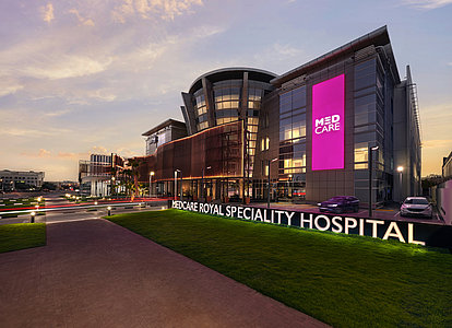 نرحب بكم في مستشفى ميدكير رويال التخصصي - حيث نعيد تعريف الرعاية الصحية المتميزة على بعد دقائق فقط من مطار دبي الدولي. تُعتبر منشأتنا البارزة، التي تضم 126 سريراً، نموذجاً للرقي والتميز، وتوفر رعاية طبية وجراحية متقدمة بجودة لا مثيل لها لسكان دبي.